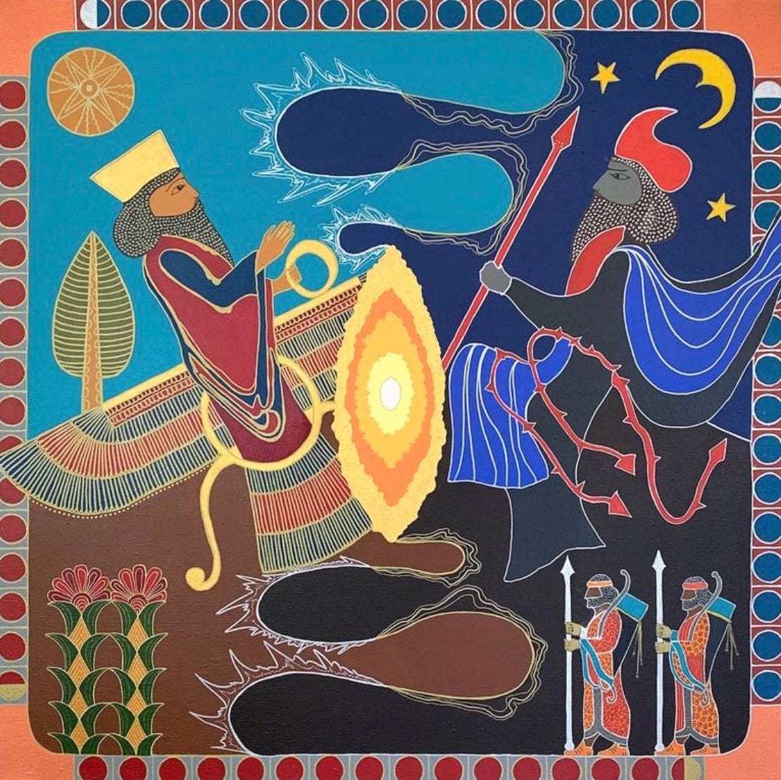 Zoroastrians believe in multiple deities which coexist eternally. Ahura-Mazda is the supreme embodiment of goodness and truth, while Ahriman is an independent evil spirit who creates a cosmic dualism between forces of light and darkness. Perhaps our modern religions are attempts to decipher this ancient battle. According to legend, until Ahura-Mazda created light, Ahriman was not yet conscious of his existence. In his 1928 book, The Secret Teachings of All Ages, occult philosopher Manly P. Hall added, “When Mazda created the earth, Ahriman entered into its grosser elements. Whenever Mazda did a good deed, Ahriman placed the principle of evil within it. At last when Mazda created the human race, Ahriman became incarnate in the lower nature of man so that in each personality the Spirit of Good and the Spirit of Evil struggle for control.”
